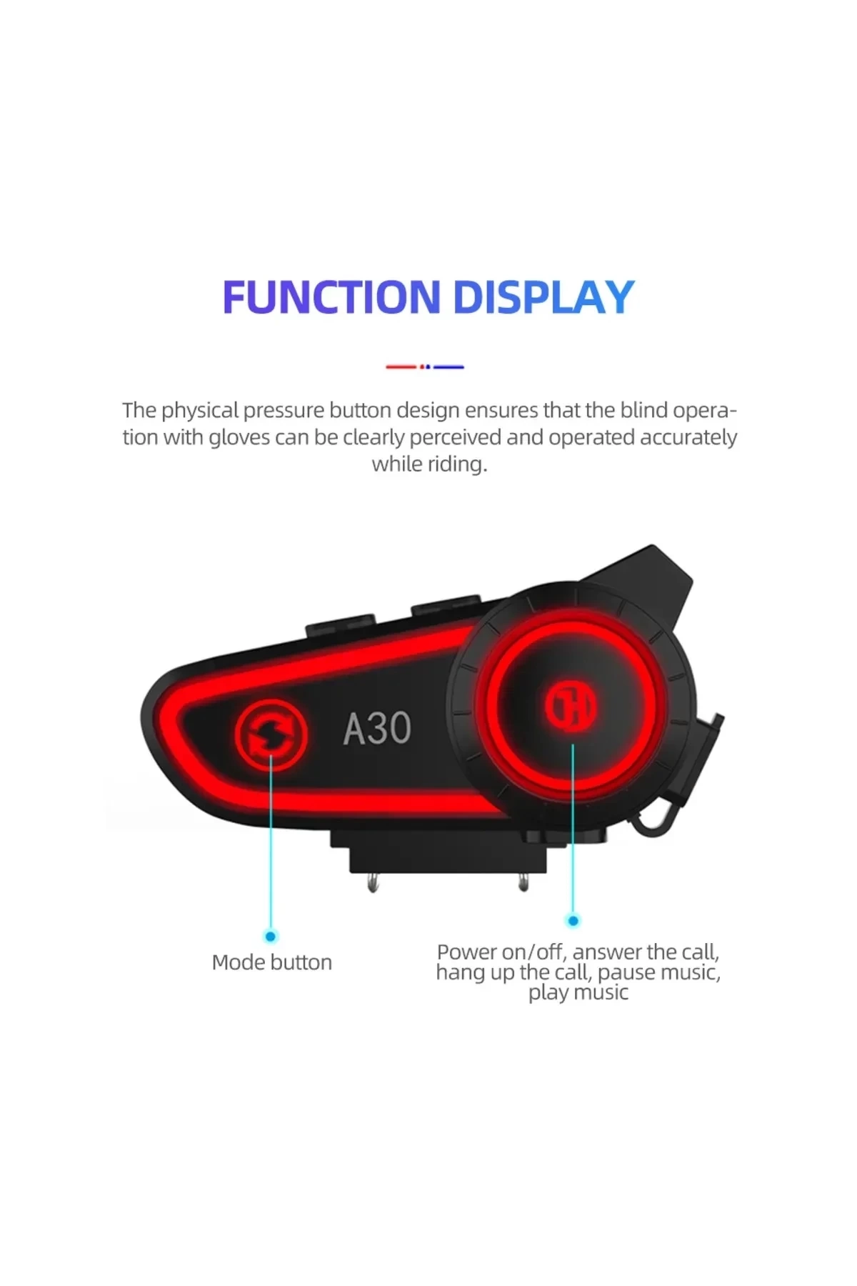A30 Motosiklet Kask Kulaklık Intercom Işıklı 2 Eşleşme Özellikli