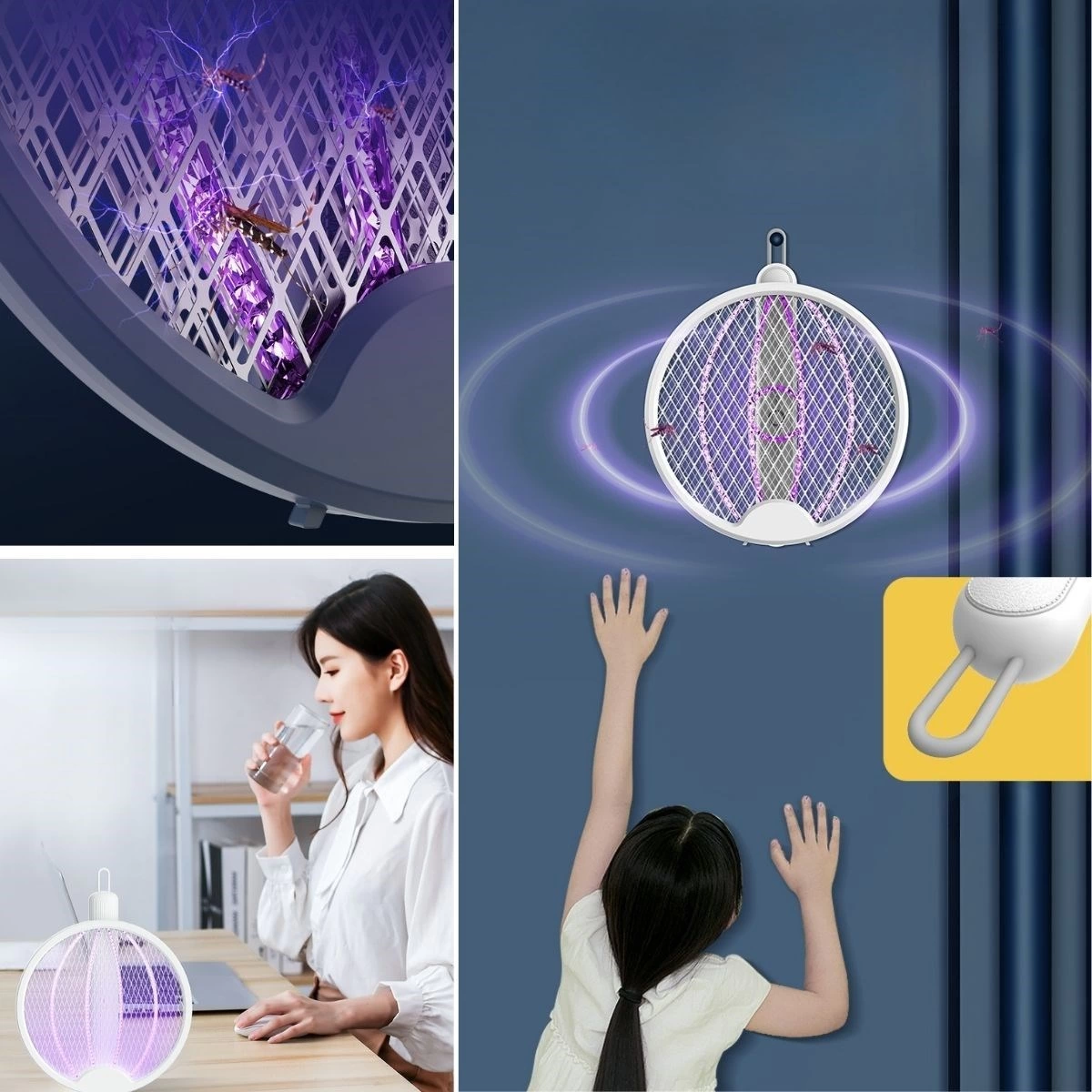 Asılabilen ve Masaüstü Olabilen 2W Sinek Öldürücü Mor Işıklı Raket, sinek ve böceklere karşı etkili bir çözüm sunan çok yönlü bir cihazdır. Hem asılarak hem de masaüstünde kullanılabilen bu raket, mor ışık teknolojisi ile sinekleri çekerek hızlı ve etkili bir şekilde öldürür.
