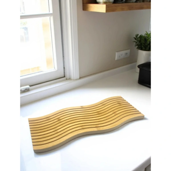 Dalgalı Çift Taraf Tasarımlı Ahşap Sunum Tepsisi