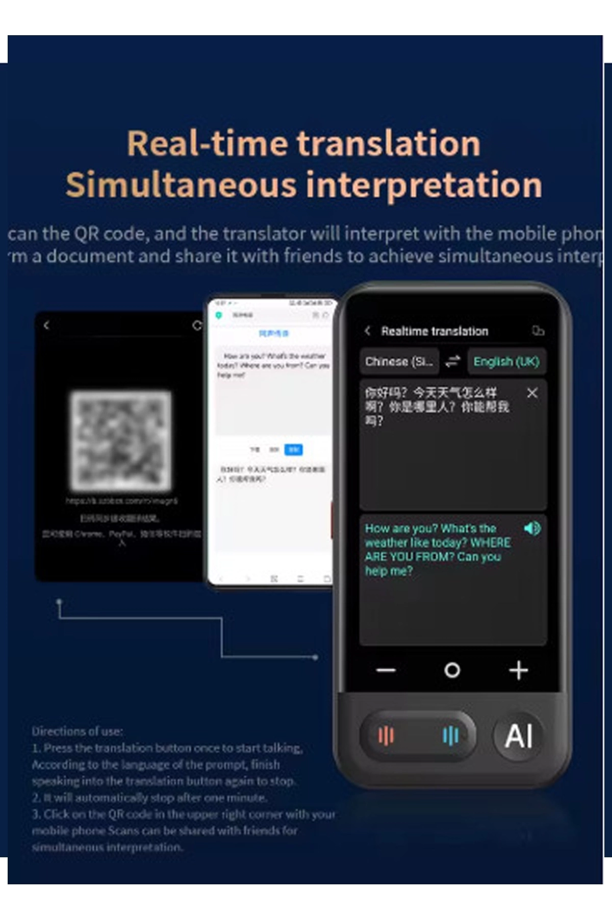 Kameralı 140 Dilde Wifi Özellikli Translator Elektronik Çeviri Cihazı Türkçe Menü