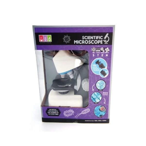 STEM MİKROSKOP SETİÜrün ÖzellikleriSTEM mikroskop seti, bilimsel çalışmalara ilgi duyan çocuklar ve öğrenciler için geliştirilmiş profesyonel bir settir. 10X ve 20X göz merceği ile birlikte 4X, 10X ve 40X objektif lenslere sahiptir. Bu kombinasyon sayesinde 40X’ten 1200X’e kadar büyütme imkânı sunarak hücre, mikroorganizma ve küçük objelerin detaylı incelenmesini sağlar. 16.3x10x21.8 cm boyutlarındaki kompakt tasarımı sayesinde hem sınıf ortamında hem de evde kolaylıkla kullanılabilir. LED aydınlatma sistemi sayesinde net ve parlak görüntüler elde edilir. 2 adet AA pil ile çalışan cihaz, kolay taşınabilir yapısıyla eğitim ve hobi amaçlı kullanım için uygundur.Paket İçeriği1 adet Stem Mikroskop Seti