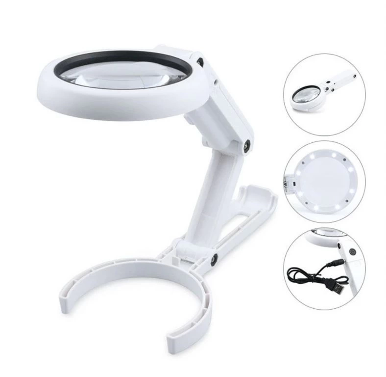 Usb Şarj Edilebilir Katlanabilir 3.5-10x Büyüteç 8 Ledli Masa Ve Eliçin Taşınabilir Büyüteç Fs90rc